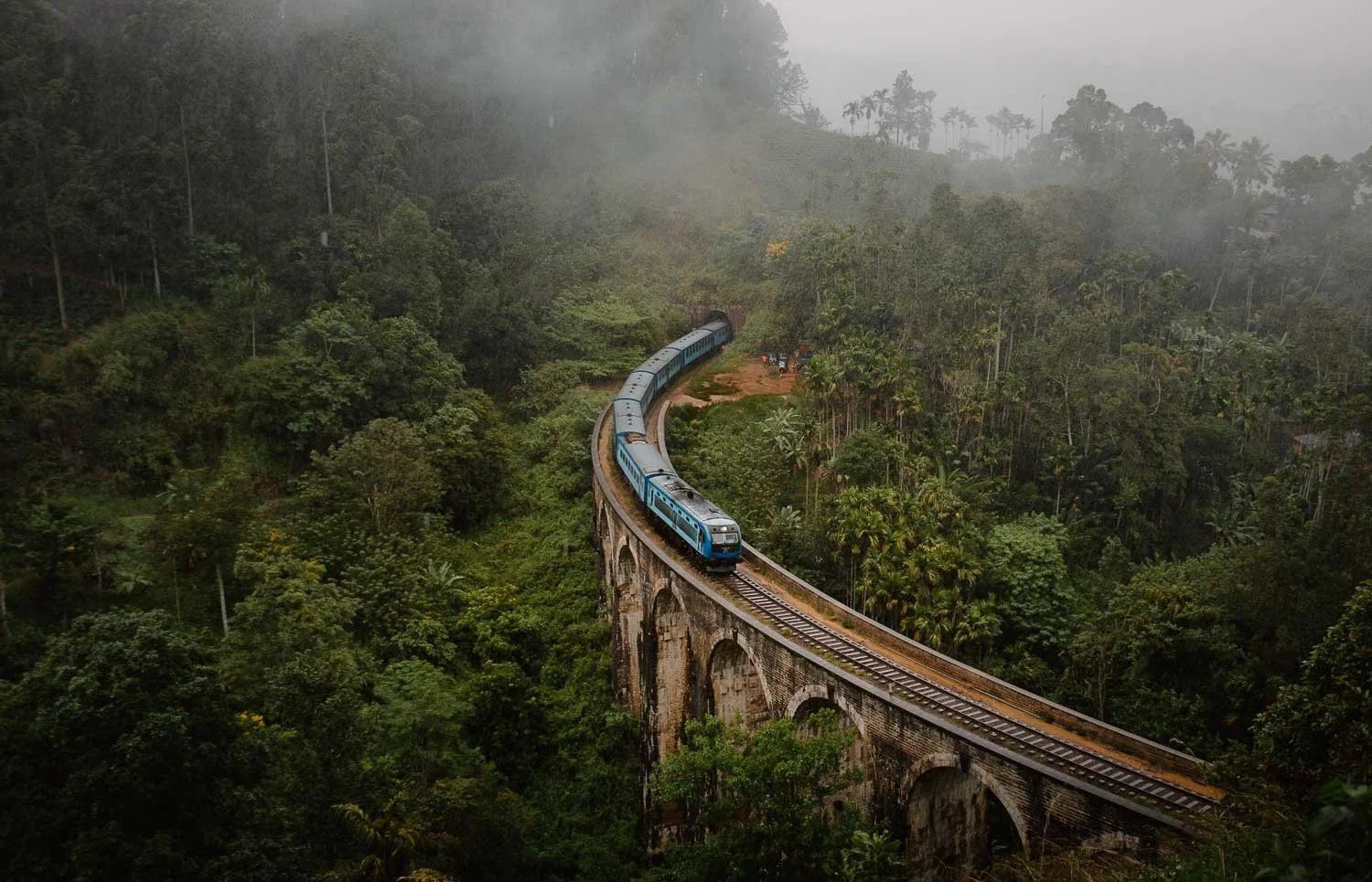 A breathtaking colonial-era bridge surrounded by lush green hills and misty tea plantations — one of Sri Lanka’s most iconic photo spots.
